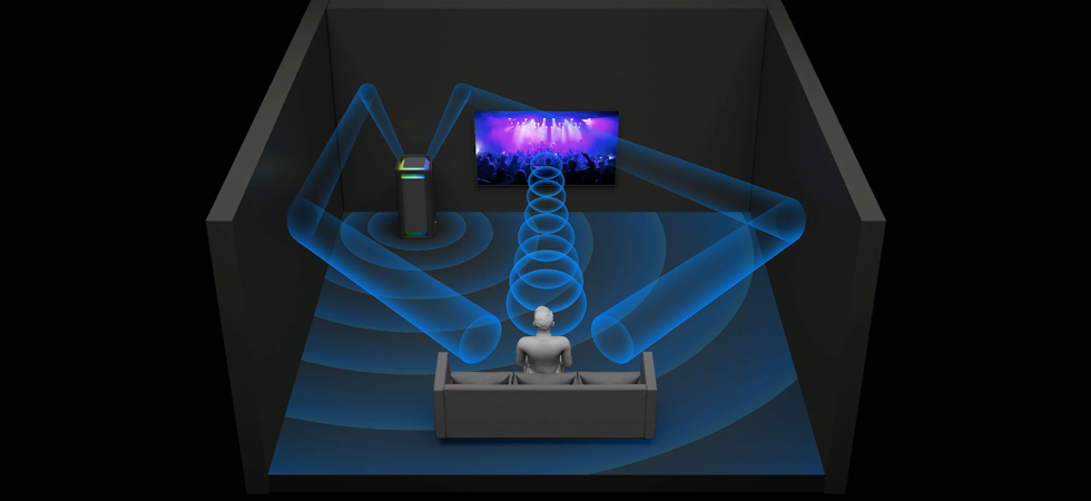 Завдяки унікальній функції підсилювача звуку телевізора від Sony покращується звучання аудіовізуального контенту, від відеозаписів живих концертів до фільмів. Поширення глибоких басів і реалістичного високочастотного звуку дає вам змогу відчути справжність подій, що розгортаються на екрані, і зануритися в них. ULT TOWER 9AC посилює звук телевізора за допомогою X-Balanced Speaker Unit, а задні високочастотні динаміки наповнюють кімнату чистим звуком.