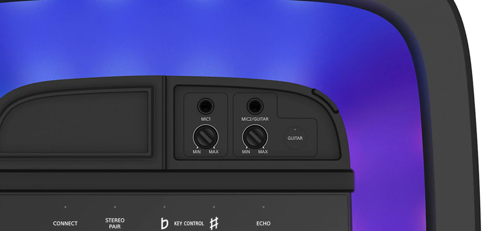 Зробіть караоке ідеальним за допомогою кнопок функцій відлуння й керування тональністю на верхній панелі. Є також другий вхід, тому можна підключити інший мікрофон для дуету або навіть гітару, а колонку використовувати як підсилювач.