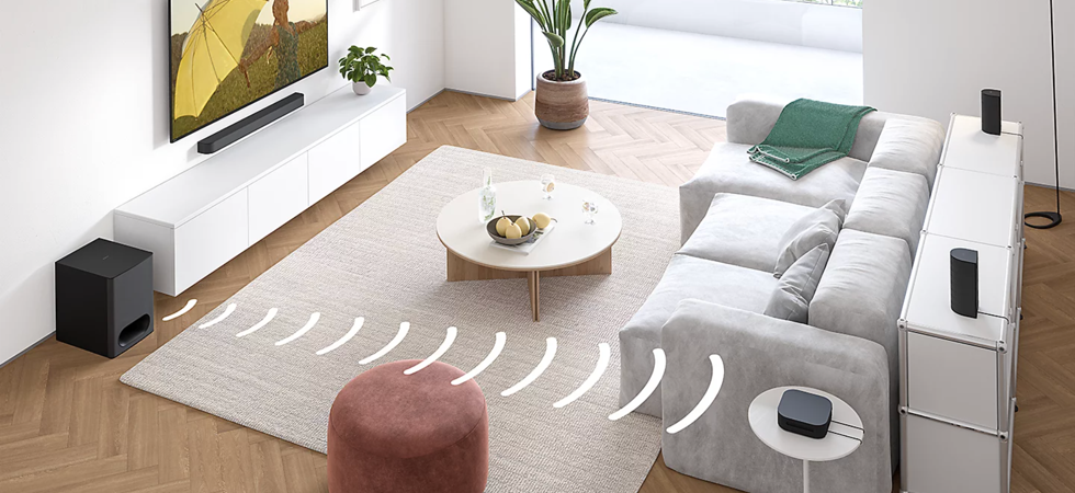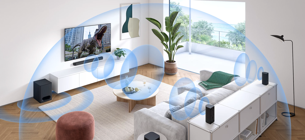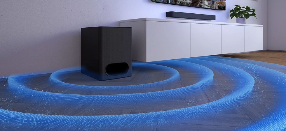 1000 Вт справжньої потужності. Узгоджена робота аудіопанелі, сабвуфера й задніх динаміків забезпечує потужні баси, стрімкі високі частоти й енергійне, захопливе звучання.
