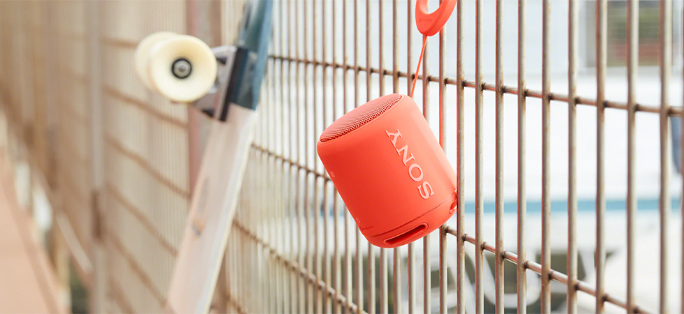 Компактний бездротовий динамік SRS-XB10 легко переносити. Завдяки тривалому ресурсу акумулятора й водостійкій поверхні цей динамік можна використовувати де завгодно.