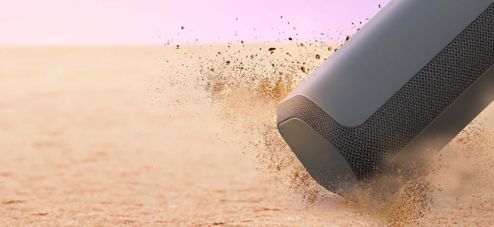 Колонка має клас захисту IP67 від потрапляння пилу, тож її можна використовувати на будь-якій поверхні – на пляжі, у парку чи в саду.