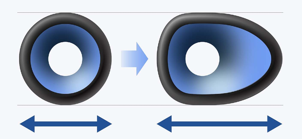 Некругла форма динаміка збільшує площу мембрани для насиченішого звучання басів, а також зменшує амплітуду коливань дифузора й зберігає акустичний тиск, зменшуючи спотворення звуку.