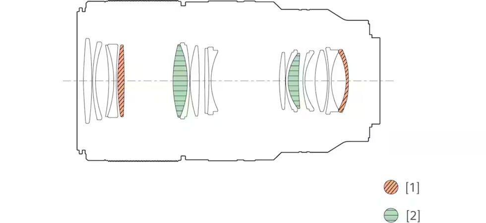 Об’єктиви серії G Master забезпечують чудову якість і виразність завдяки поєднанню високої роздільної здатності й плавного ефекту боке для фону. [1] Надзвичайно асферичний об’єктив (XA) [2] Скло наднизького розсіювання